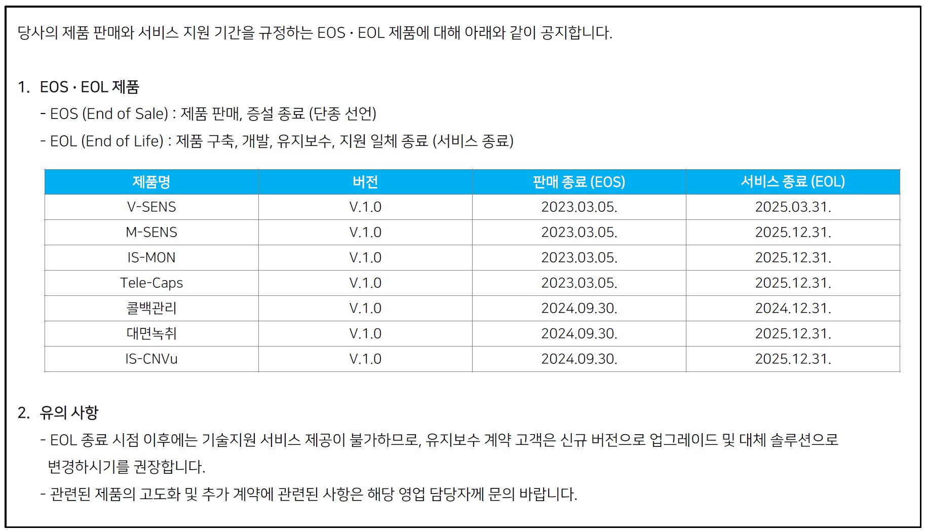 2024 단종 모델 공지